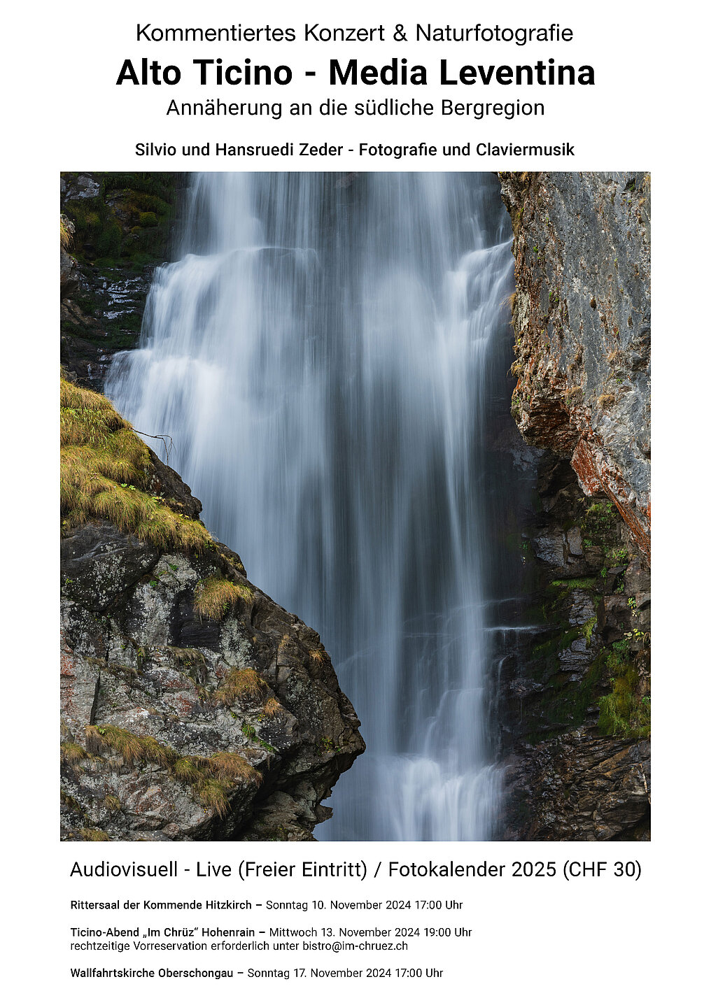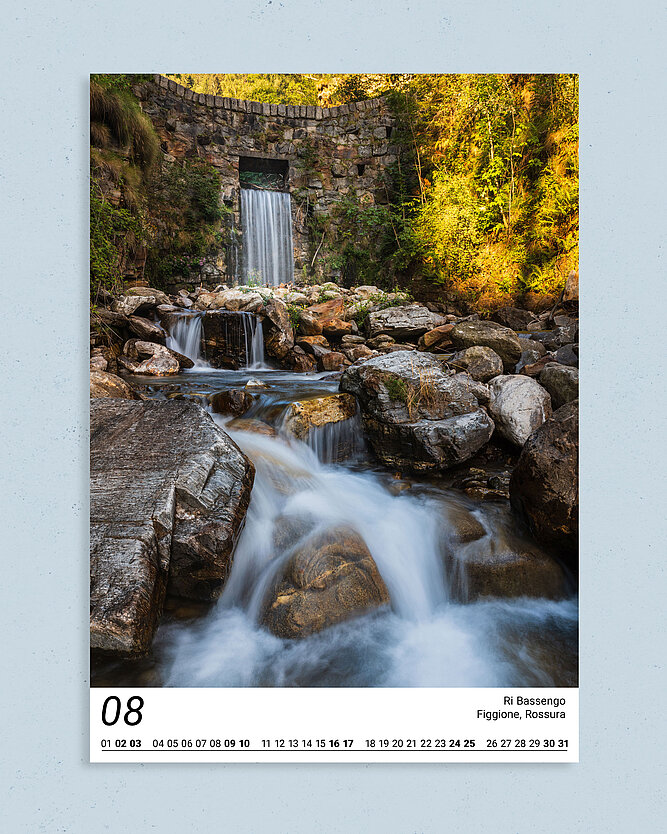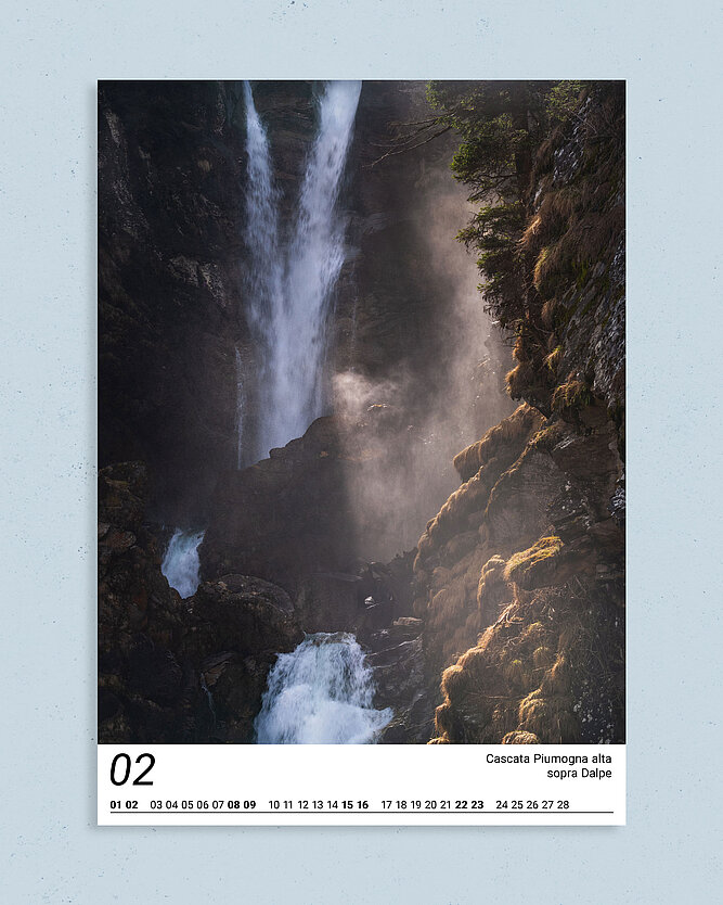 Das Wasser ist und erhält Leben. Wasser ist Kreislauf, Wasserfälle sind Edelsteine in der Landschaft, mit einem dem Wetter unterworfenen Erscheinungsbild, einmal gross und glitzernd, einmal klein und still. Dass all das mich als Fotografen auch weiträumiger interessiert verwundert nicht. Deshalb widme ich mich im Kalender 2025 ganz dem Wasser des Hochtessins.